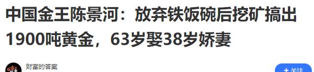 【2】https://news.qq.com/rain/a/20220513A03FIC00中国金王陈景河:放弃铁饭碗后挖矿搞出1900吨黄金,63岁娶38岁娇妻