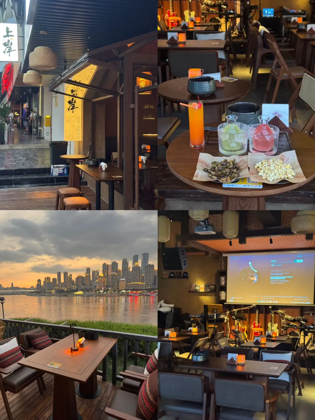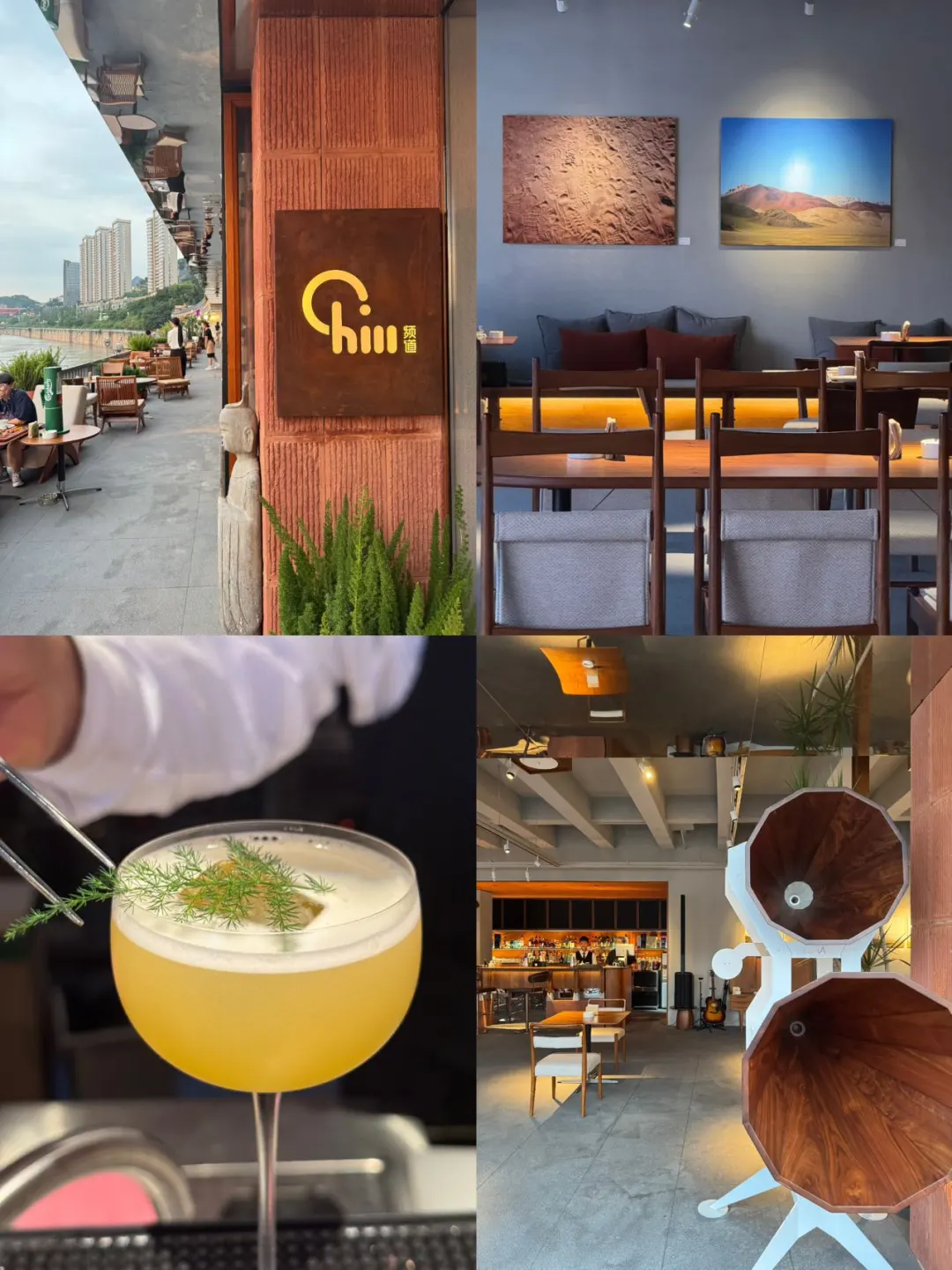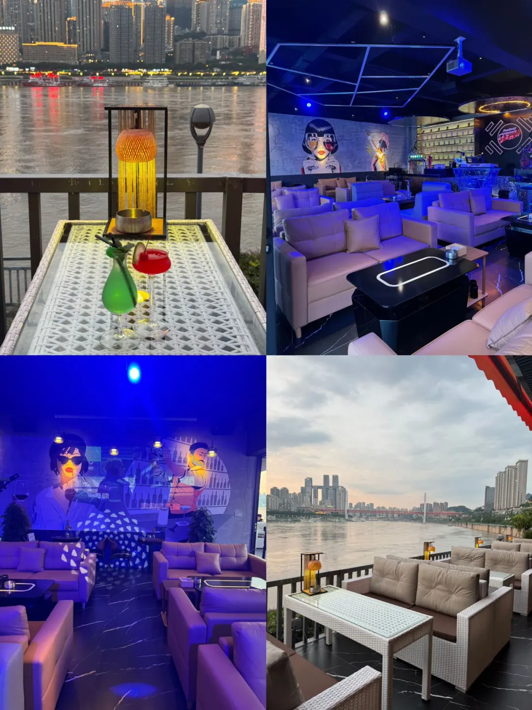 坐拥南滨路一线江景,正对渝中半岛8D天际线!白天是恬静下午茶时光,夜晚秒变微醺派对场。现场打卡出片点蛮多,随便一处拍照都很出圈~