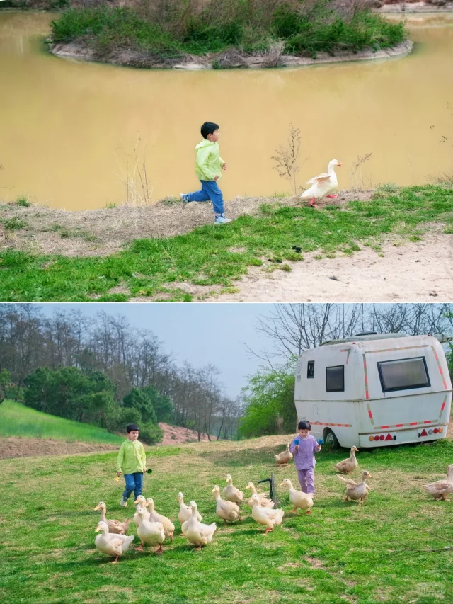 3️⃣动物互动:赶鸭子比赛全场最嗨!湖边追着鸭子跑,连爸爸都玩成了小孩