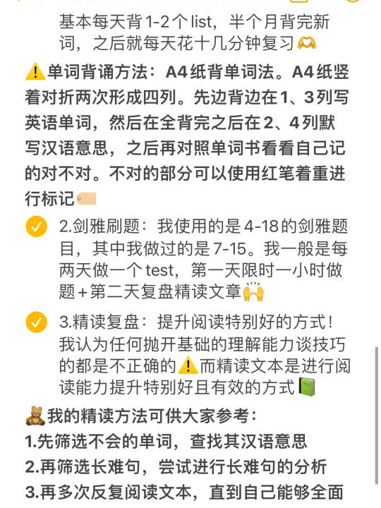 2.剑雅刷题:每两天一个test,第一天练习第二天精读