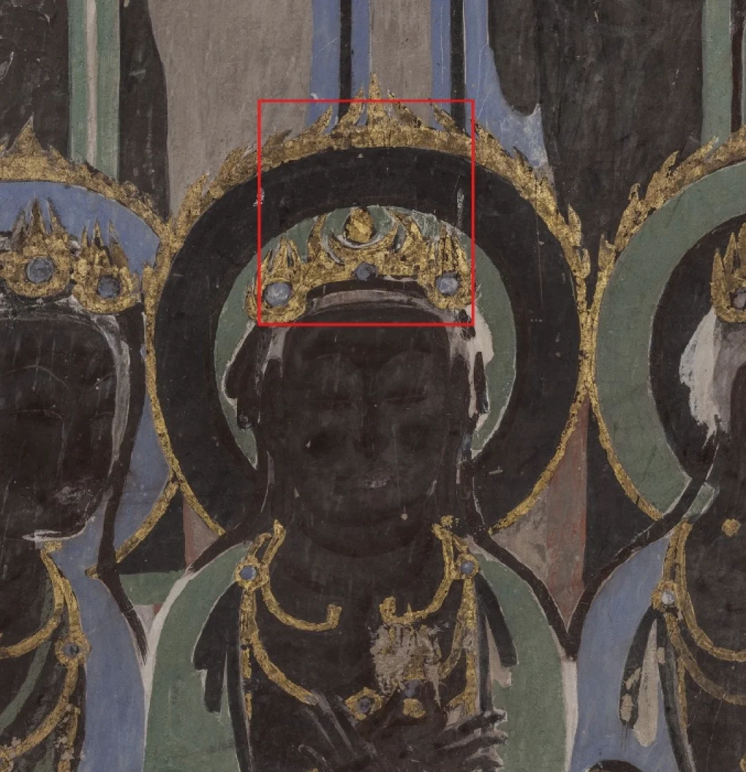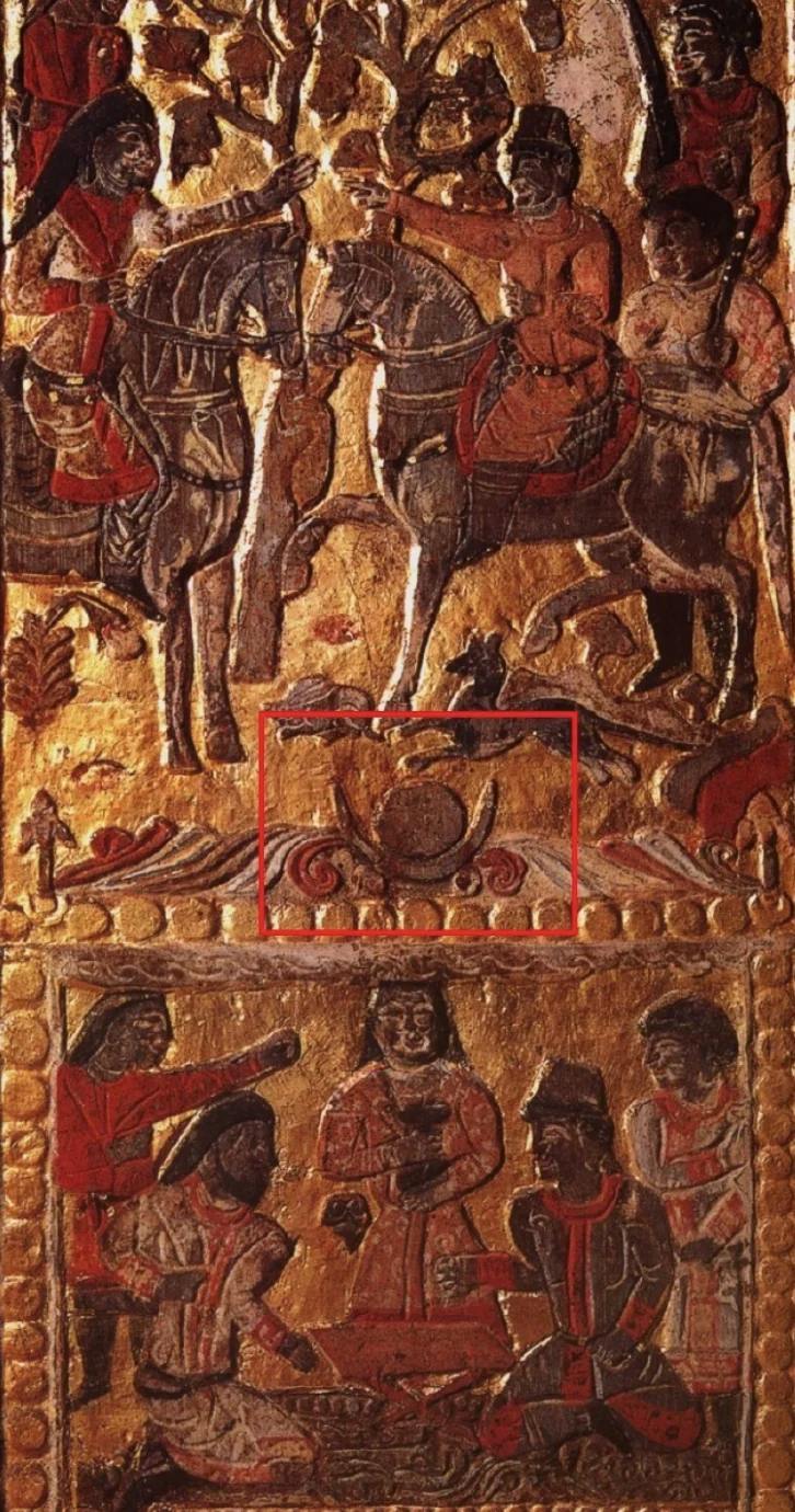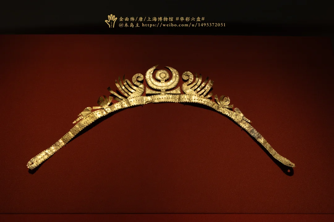 金冠上的日月装饰,是来自于波斯的王冠,和琐罗亚斯德教信仰相关,最早是由粟特人带入中国。 除了可以用在头冠之外,还可以用作马头装饰,屋顶装饰等,后面还被佛教吸收,菩萨的头冠上也经常能看到。 拍摄于华彩六盘宁夏固原文物精品展