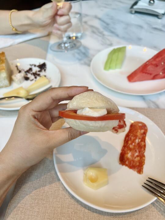 喝了半杯白的、半杯红的、两个半杯香槟🍾️,酒没喝多少,三明治火腿奶酪吃了一大堆[笑哭R] 还不错,下回和姐妹还来[doge]