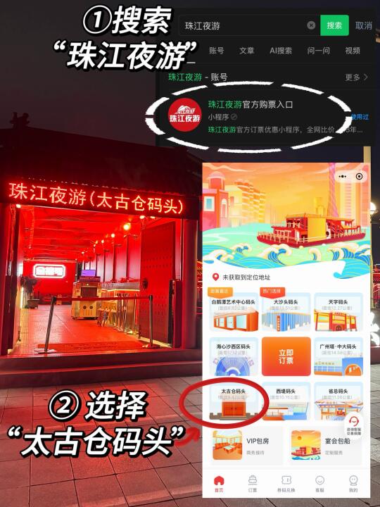 看图2 搜🔍“珠江夜游”➡️选择“太古仓码头”