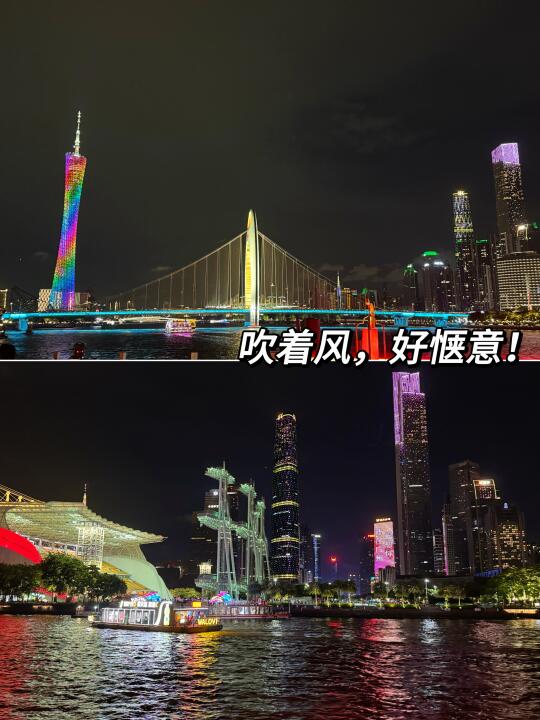 4️⃣美丽夜景:途径广州塔、海心桥、琶醍等著名地标,这个夜景,太美了吧!这灯光这楼宇,吹着风看着夜景🌃太喜欢了!