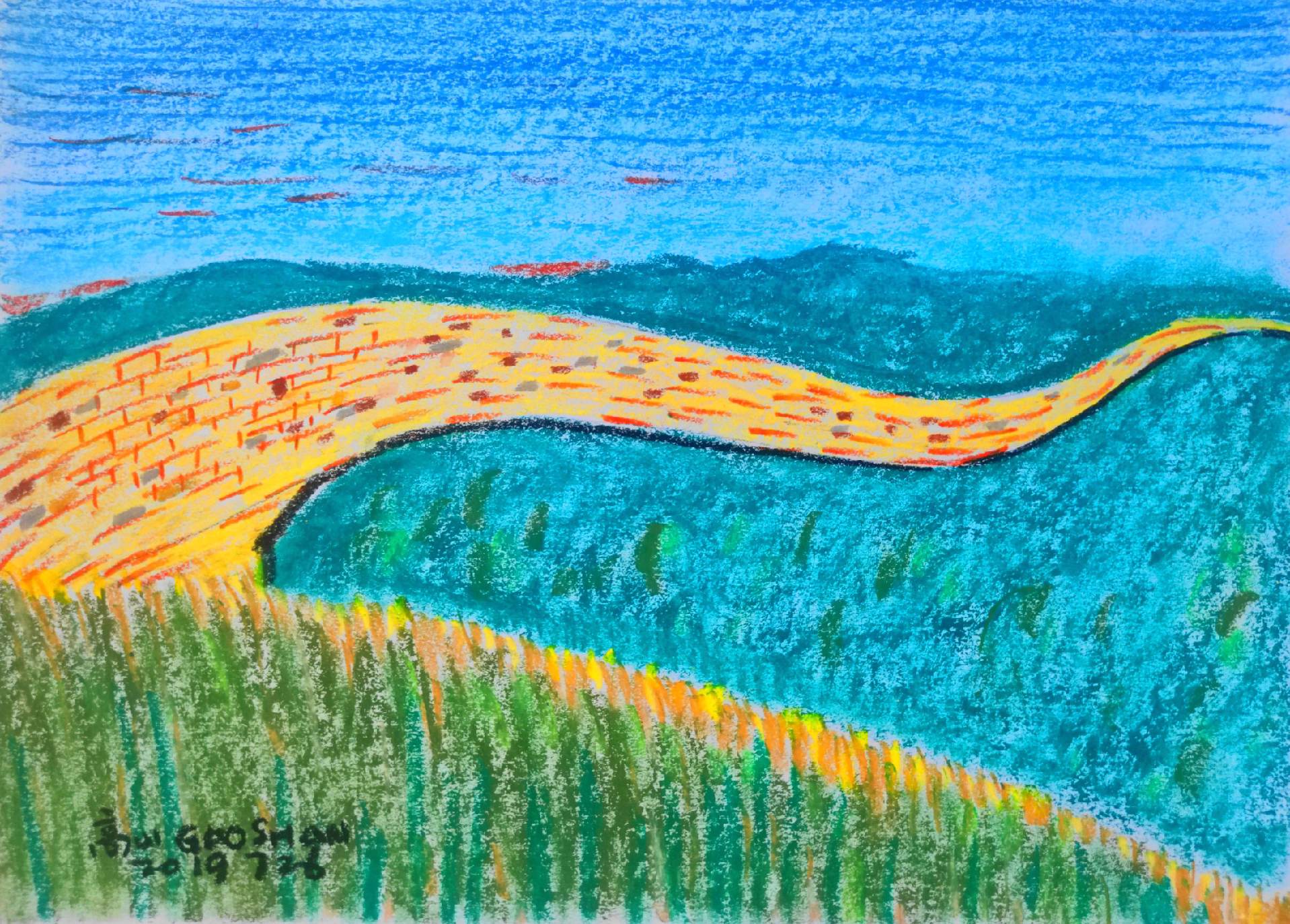 天际上的高台。长城在云雾缭绕的山峦间若隐若现时,确有“悬浮于天际”的错觉;从哲学角度,它作为人类改造自然的奇迹,其规模与跨度本身就超越用“天际”的缥缈消解了长城作为实体建筑的沉重感,又以“高台”的具象赋予其精神高度,让历史遗产在诗意想象中获得了超越时空的生命力,源远流长。