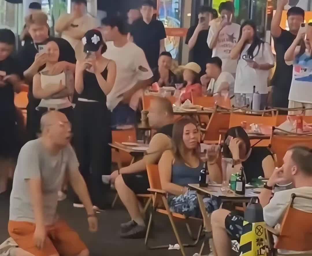 一男子在街头向一名老外下跪引发围观群众不满! 7月14日,吉林长春街头,一名男
