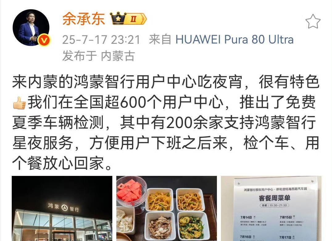 真有鸿蒙大酒店啊[捂脸] 看到余承东兴高采烈给大家推荐的这个样子,就说明全国不止这一家,他今天打卡的是在内蒙古呼和浩特海西路汽车园里面这一家,虽然他不是真正意义上的酒店,就是一个用户中心,但是他走的路子和蔚来的牛屋很像! 里面吃的喝的玩的什么都有,甚至还有当地的特色,这种模式推出来全国各地不一样,那种感觉真的很舒服! 只是不知道这种用户中心,里面有没有提供住宿服务,如果有的话,那就算得上是鸿蒙大酒店了[捂脸] 毕竟全国开鸿蒙智行的用户这么多,如果在任何地方都能够找到自己的用户中心吃喝玩乐意识型都包完,那么对用户来说,有一种强烈的归属感,对于商家来说,他们也愿意这样做,因为他们基本上收获的,都是百分之百的优质用户!