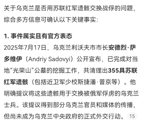 他明确提议,将这些遗骸用于交换被俄罗斯俘虏的乌克兰士兵!