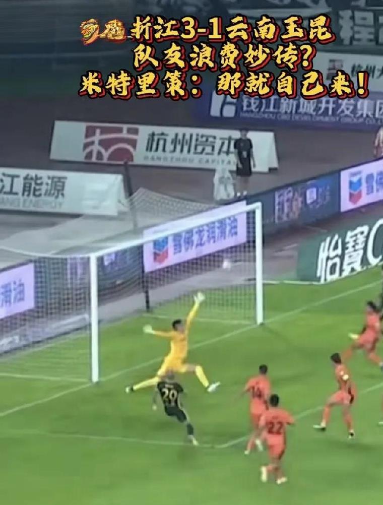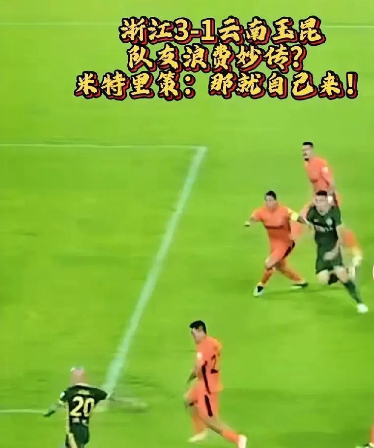 米特里策,当之无愧的中超第一外援。浙江中超对阵云南玉昆,在开场一球落后的不利形势