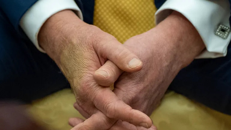 照片铁证如山,特朗普脚肿得像馒头,手上粉底厚得像糊墙!白宫这下慌了,赶紧解释说是小毛病,还说总统身体倍儿棒。但网友又不傻,上次拜登说没事,结果呢?这次白宫想蒙混过关,没门!