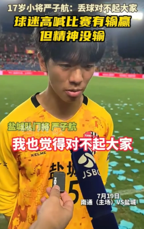 “太让人心疼了。”苏超烽火再起,盐超1:2不敌南通。17岁的门将严子航在面对记者