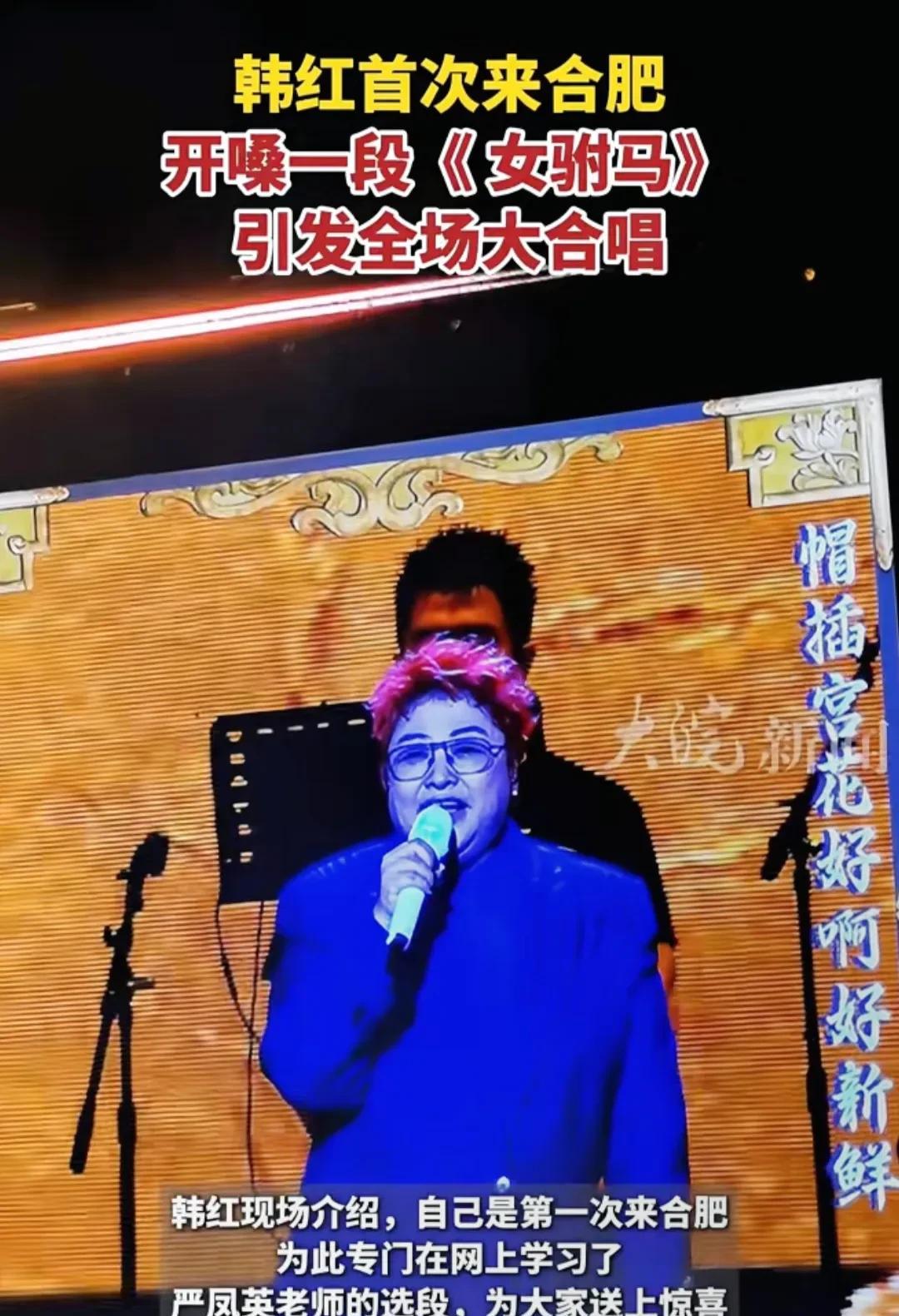 韩红合肥演唱会《女驸马》征服全场。7月19日,韩红“我想成为你”巡回演唱会合肥站开唱。首次来到合肥的她,开场就直言心情忐忑。但当她唱起黄梅戏《女驸马》选段,瞬间惊艳全场。 为了唱好这一段,韩红特地跟着黄梅戏大师严凤英的表演片段深入学习。演唱时,她韵味十足,将“为救李郎离家园,谁料皇榜中状元”的故事生动演绎。尽管此前有些感冒嗓子不适,她依然凭借扎实唱功和敬业精神,完成了这次高难度演唱,用实力征服现场所有观众。#爆料# #韩红合肥演唱会爆# #韩红巡演#