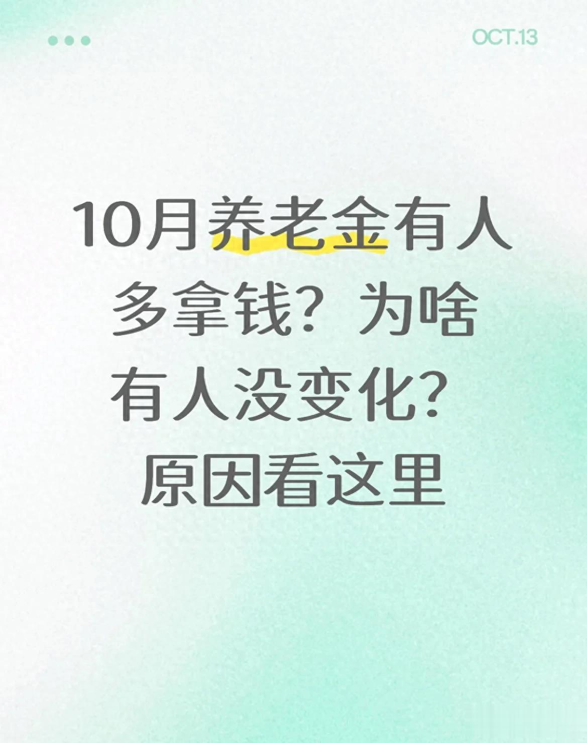 最近退休群体里不少人讨论养老金变动,有人说10月工资卡多了一笔钱,有人却发现金额和上月一样,大家难免疑惑:“为啥别人有额外收入我没有?”其实这不是政策搞特殊,而是10月属于养老金待遇的“集中兑现阶段”——既有调整后的补发,也有季节性补贴到账,还有部分人因待遇类型、退休时间等原因,金额暂时没变化。今天就用大白话捋捋,帮大家搞清楚自己的情况。