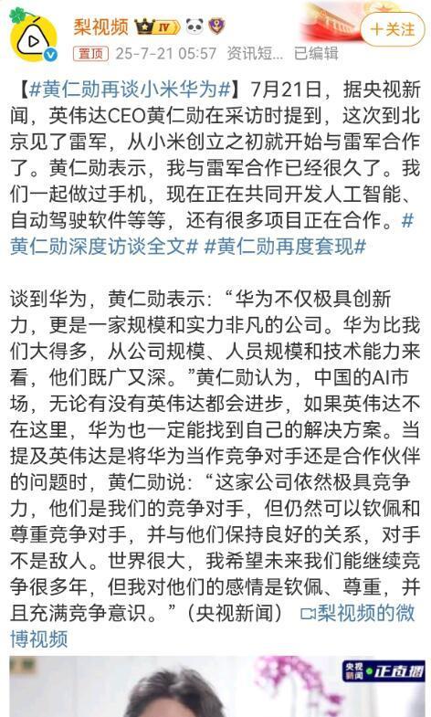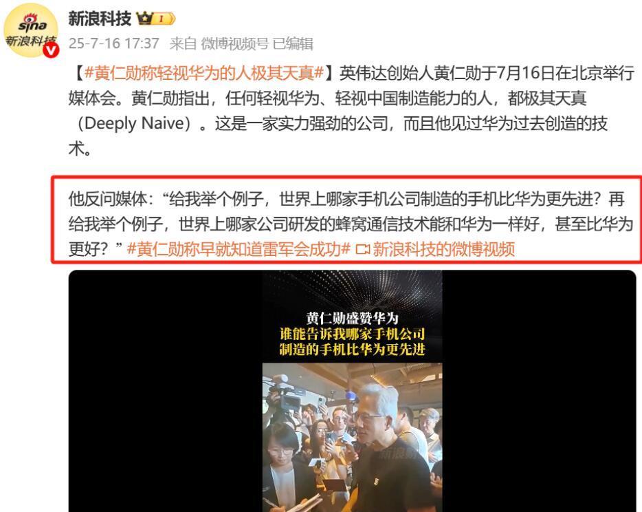 泪目了!让人心寒,只有黄仁勋说了真话 问心无愧的讲,华为到底差在哪里!在7月21