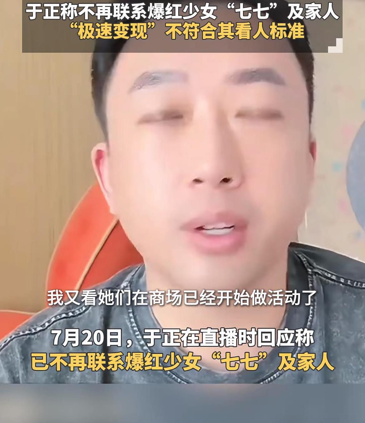 于正明确表示不联系七七后,其他经纪公司也摁下暂停键,七七因为妈妈的急功近利 ,失去了快速变成明星的机会。于正的意思就是孩子妈想赚快钱,不想孩子去做专业训练当演员。 现在妈妈带她出席各种场合,即使是暑假工是兼职,孩子已经接触到这个行业了,也知道这个行业来钱快,再回到学校,很大程度一定会影响学习的。 其实挺可惜的,和签不签于正没关系,泼天流量来了,不出意外肯定能有好的发展,更应该注意自己的行为。 她妈妈这种做法把女儿搞得低端了,还败了路人缘,小姑娘长得确实好看很有电影感,但她才14啊,可能还会继续发育变样,希望她能一直漂亮吧。#于正#