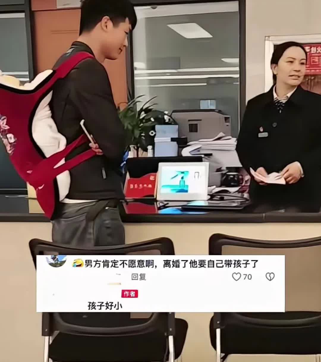 一对年轻夫妻在民政局办理离婚手续,丈夫还背着很小的宝宝,面对妻子的执意丈夫满脸苦笑,工作人员无奈的问谁提的?丈夫说她提的,问她是家暴吗妻子说没有,不知道到底是男子还是女子的问题,但我推测应该是女子的问题,因为男子背着娃娃,显然女子准备甩掉包袱,想离开!如果连自己的孩子都不想要了,人品也好不到哪里去,铁子们你们说呢?头条