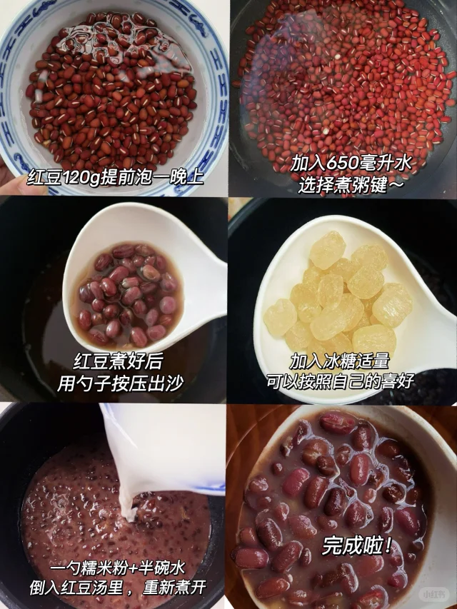 [三R]为了汤汁更粘稠,(1勺糯米粉+半碗水)混合后倒入红豆汤里,重新煮开~