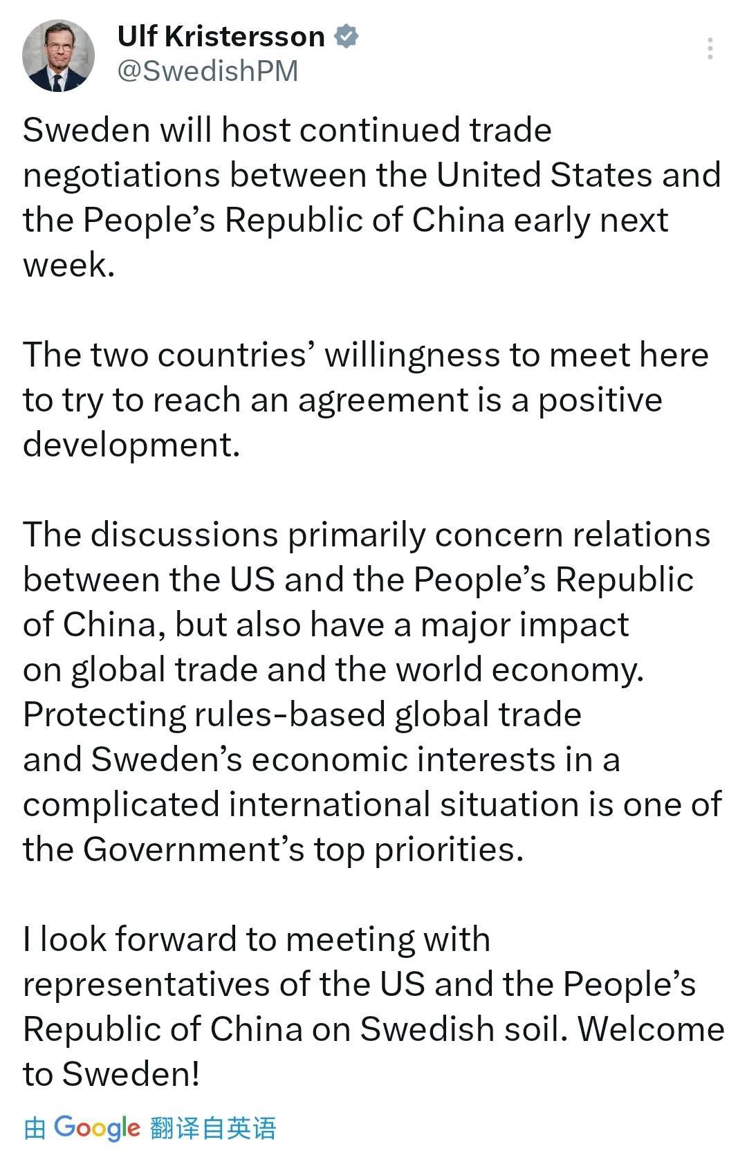 7月22日晚,瑞典首相克里斯特松通过个人社交媒体正式公布了消息,瑞典将作为东道国,协助举办下周一、周二(7月28、29日)在斯德哥尔摩举行的第3轮中、美经贸磋商。那么中、美为什么会将这一次会谈的地点选在瑞典呢? 首先,地理位置仍然是一个重要的因素,它关系到中、美之间的对等性。实际上,中、美两国到瑞典的距离大概都在6000多公里左右,这是一个重要的选择标准。 其次,中立性也是至关重要的。实际上在乌克兰危机发生之前,瑞典长期以来都是中立国,也并未加入北约。即便是从中瑞双边关系的角度来看,瑞典早在1950年就同中方建交,也是第1个同中方建交的西方国家,这一点非常特殊。而且2025年也是中瑞建交75周年的特殊时间点,中方恐怕也会借机和瑞典进行一系列的双边外事活动。 第三,瑞典历来都是大国谈判的重要平台之一。比如1984年美苏关于削减战略武器的斯德哥尔摩会议,对于冷战的缓和和战略对抗的缓解,起到了重要作用。冷战时期,它是美苏对话的重要平台;而如今,它可能也会成为中、美对话的一个重要选项。
