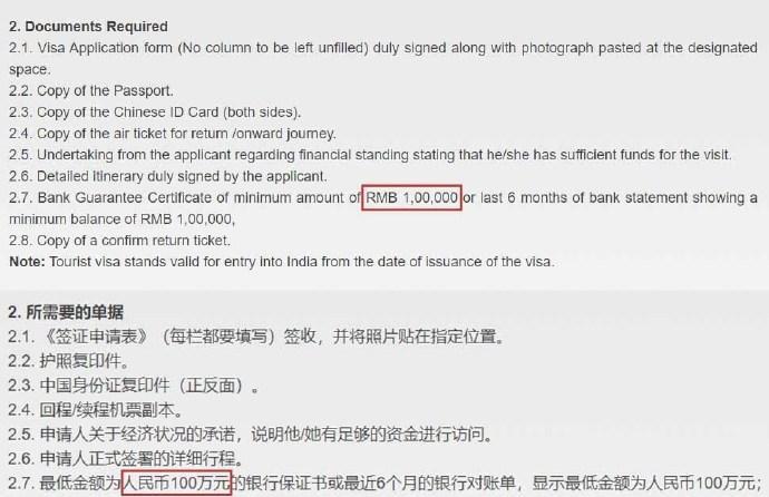 去干嘛?喝恒河水,打标枪……然后减肥吗? 提醒一句,5年前他们停止发放旅游签证,是由于疫情以及军事摩擦……现在,眼见着混不下去了,又决定要开放了。 啥,想去? 人家的官网上赫然写着“最低金额为人民币100万元的银行保证书或最近6个月的银行对账单,显示最低金额为人民币100万元”。 人家要验资的,人民币存款不能低于100万!当然,后来,他们又改成了10万[翻白眼]。 有十万块人民币上哪里玩不好,难道就想去他家吃糊糊么[摊手]?