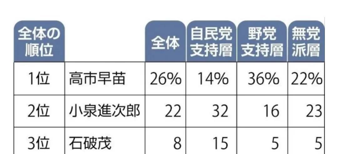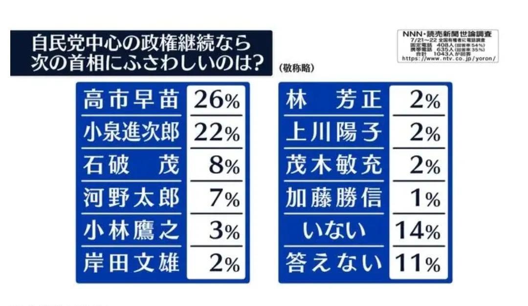 7月23日上午,根据石破茂周边人士释放的消息,石破茂已经基本确定将在8月内辞职。那么石破茂何时会正式宣布呢?下一任的日本首相最可能是谁呢? 目前看起来,石破茂在8月最后一周宣布辞职的可能性最大。因为对他来说,8月还有4个重大的外交议程需要处理: 第3是8月15日出席二战结束80周年的相关活动,并可能会发表讲话,这对于他个人的历史定位来说,也是很重要的; 第4,东京非洲发展国际会议(TICAD)将于8月20日至22日在横滨举行。届时有数10位非洲国家的领袖访问日本,他在这之前辞职也很不合适。 因此,在这4件大事完成之后,石破茂在8月底辞职的可能性最大。随后应该会在9月进行自民党总裁的选举,接着在10月的临时国会上进行首相的投票选举。虽然自民党现在并不掌握众议院多数席位,但下一任日本首相由自民党总裁担任的概率仍是最大的。 昨天,一些日本媒体已经进行了紧急调查,目前看起来,高市早苗和小泉进次郎的支持率“一骑绝尘”,未来的竞争应该也在这两人之中进行。但相比较而言,高市早苗获胜的概率应该是更大的: 一方面,自民党内对高市早苗的支持率很高,希望通过高市早苗来调动保守派的基本盘。而作为“胜负手”的麻生太郎,也更可能支持高市早苗,而非和石破茂关系更近的小泉; 另一方面,很有意思的是,高市早苗在在野党内的支持率也远远高于小泉。这些在野党认为,如果把极端的高市早苗选上去,有利于扩大自民党内的立场“分裂”,以进一步打击自民党。因此,在最终的国会投票当中,在野党也有可能会形成联盟,直到把高市早苗给选上去。因此,到10月份的时候,我们有可能会面临一个高度极端保守的,也是日本历史上的第1位女首相——高市早苗。