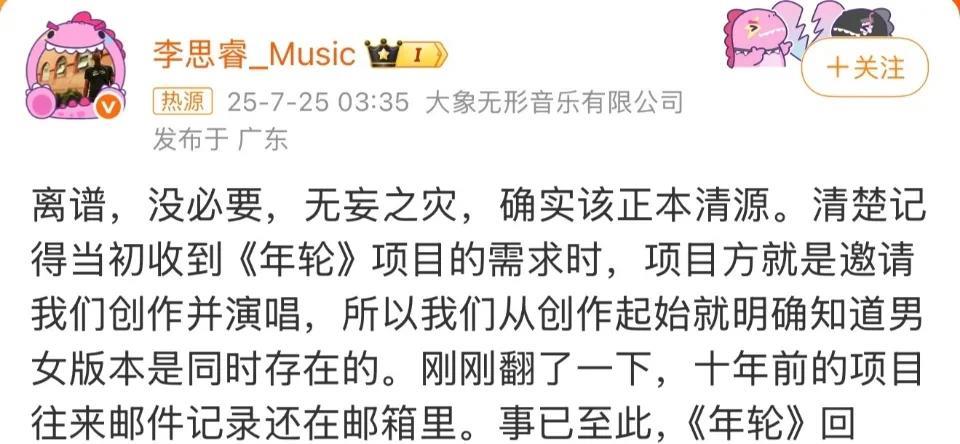 汪苏泷:不要被带节奏了,我俩都是原唱。 张碧晨:我是唯一原唱。 汪苏泷:那你别唱了,我收回版权了。 事情起因:《年轮》这首歌的版权在汪苏泷那,他是歌曲的版权者+创作者+原唱者。但是网红“旺仔小乔”要开演唱会,备.案了《年轮》说唯一原唱是张碧晨只认张碧晨(演唱会歌曲都需要授.权)。 张碧晨工作室发声明称张碧晨是《年轮》法律与行业意义上的“唯一原唱”,依据包括:时间优先性:2015年6月15日,张碧晨演唱版作为《花千骨》的插曲首发上线,早于汪苏泷男声版(6月30日)。 然后张碧晨的粉丝、旺仔小乔的粉丝、吃瓜路人等都开始嘲讽汪苏泷,说张碧晨才是唯一原唱。汪苏泷团队出声明说最初项目设立时就是双原唱,还保留了邮件往来记录,但依然禁不住各方骂.战。于是汪苏泷本人声明将暂时收回歌曲所有授.权。现在张碧晨也不能唱了。 不懂张碧晨的团队在干什么?两人之前还在演唱会上合唱过《年轮》,为什么要弄的这么僵?