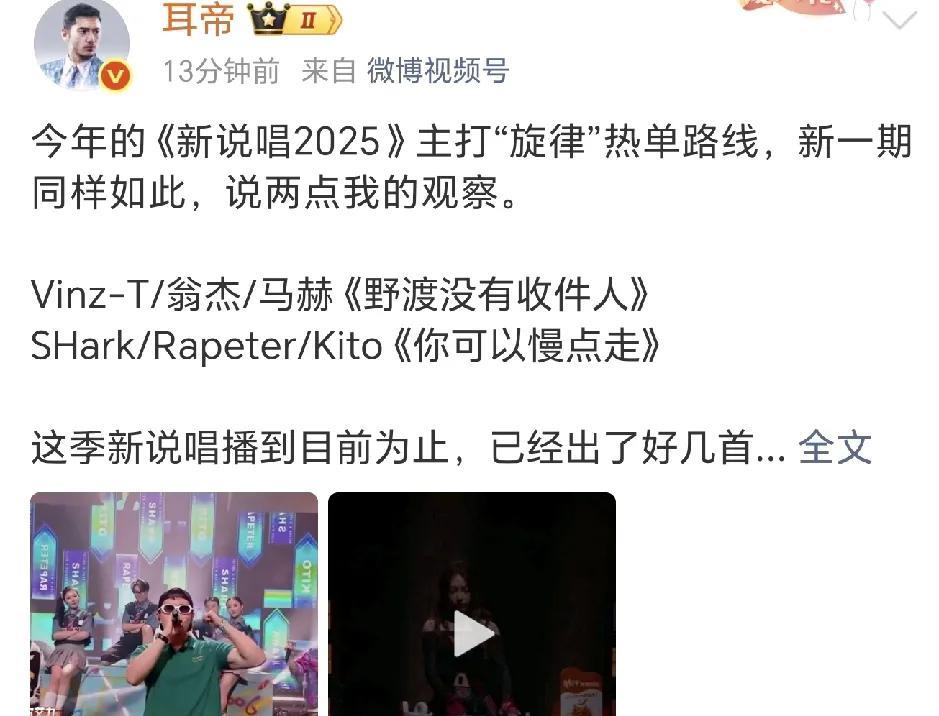 真是太好笑了,乐评人还带这样的啊,别的乐评人都在加紧码字,长篇大论的蹭热度,耳帝这一期直接发博,这一期不评了!我就没想明白,到底发生了啥让他休息了呢? 这一期的哪些内容让耳帝不想说话? 其实这一期我也不知道该说什么了,挺堵的,看到耳帝都不想评了,我的心里好像稍微舒服了一点儿! 现在就想越过下周,直接到总决赛! 快点结束吧!#歌手淘汰争议# #歌手2025#