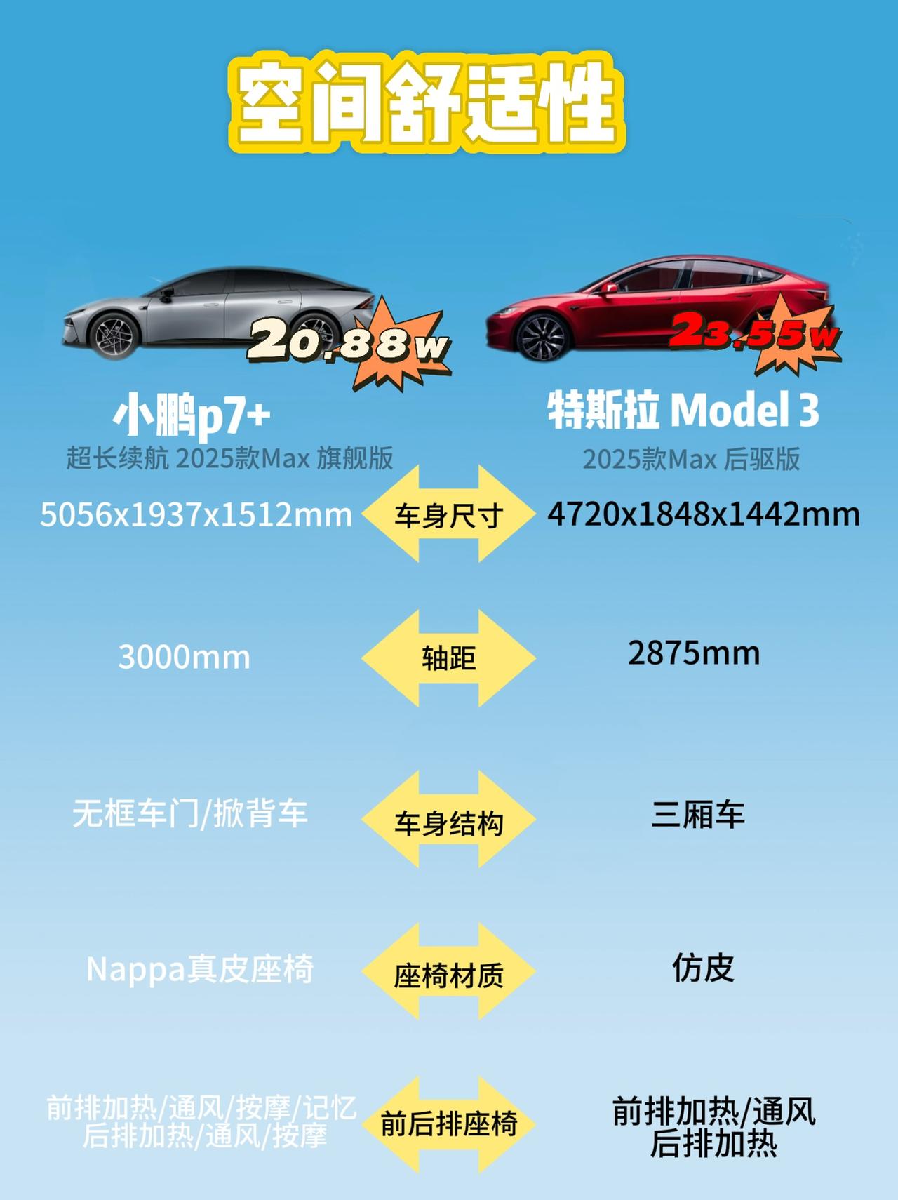他非说Model3是“男人的驾驶图腾”,我偏觉得P7+的大空间和智能座舱才是过日子的顶配。 从4S店吵到停车场,他拍着方向盘说我“不懂操控”,我翻出育儿嫂的话怼他“后排装不下婴儿车就是摆设”;他熬夜找测评说“特斯拉保值率甩一条街”,我扒出闺蜜家的使用记录“冬天续航打五折你扛得住?”。最绝的是婆婆来解围,一句“我坐过邻居家的P7+,那座椅比你爸的按摩椅还舒服”,直接让他闭了嘴。 提车那天他还嘴硬“先开着,以后换Model S”,结果现在天天抢着开P7+送娃,说“语音控制调空调比按按钮方便多了”。只能说,男人啊,嘴上再硬,也架不住实用主义的真香定律~ (PS:纠结这两款车的姐妹,听我一句劝,带全家去试驾一次,答案自会浮出水面~)