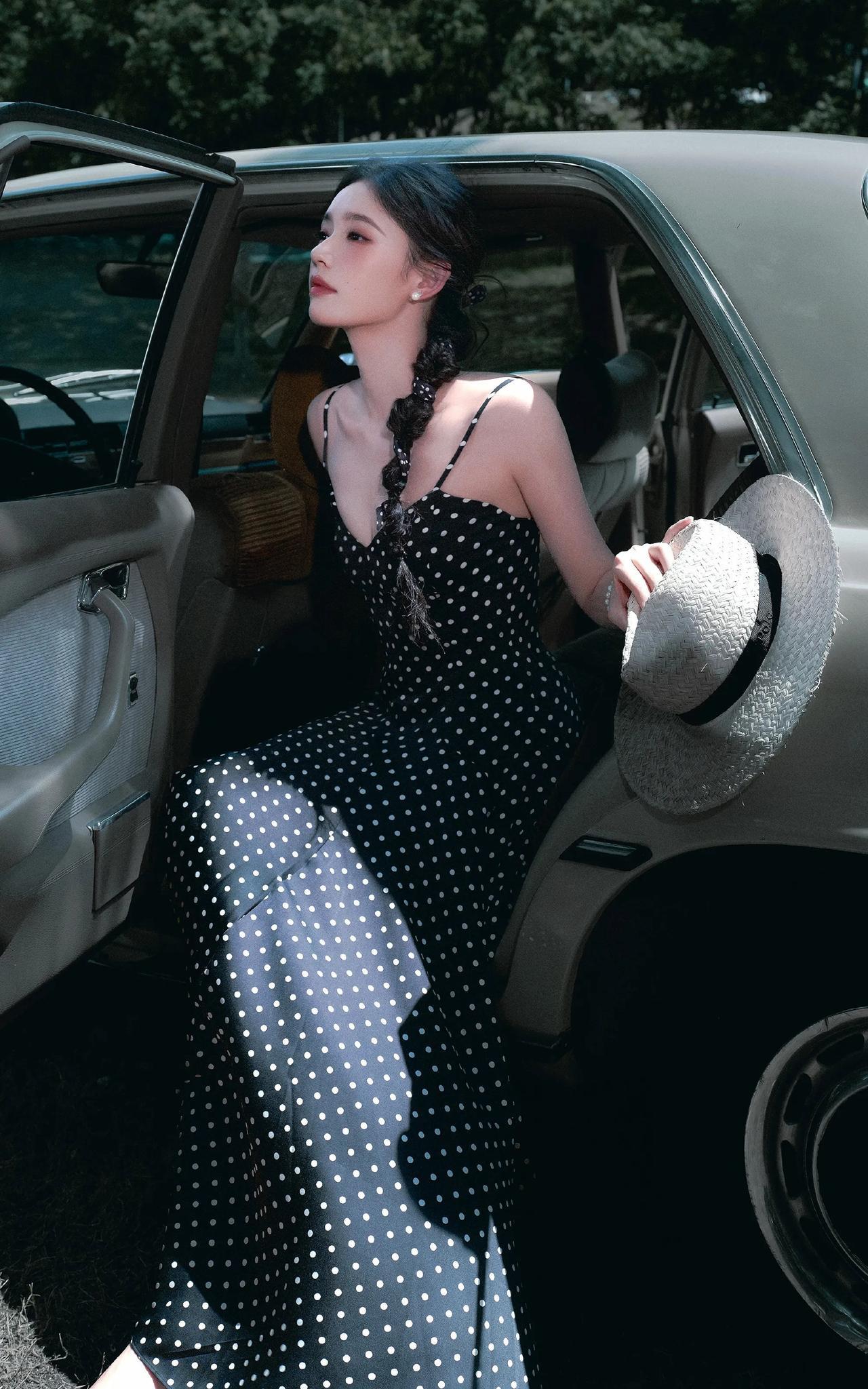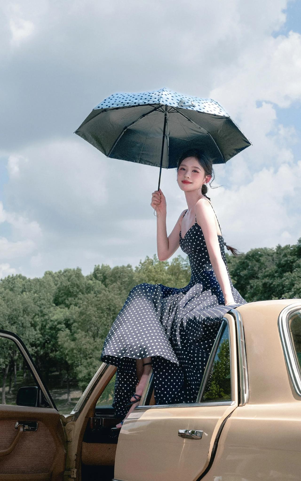 林允老钱度假风 林允这组写真把“假装在度假”玩出老钱松弛感!黑色波点吊带连衣裙适配松弛氛围,草帽往复古车上一搭,阳光穿过树叶洒进来,旧车、随性造型直接拿捏氛围感。不用真去远方,靠穿搭和场景狠狠拿捏度假精髓,把日常掰出度假碎片,主打一个在城市角落偷享逃离感,随手一拍都是松弛大片,这波老钱度假风算是被林允玩明白了[爱慕][爱慕][爱慕]