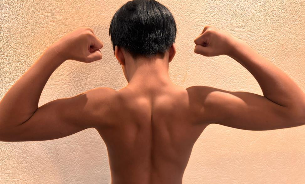 #吴京谢楠大儿子肌肉照#谢楠晒出上五年级的大儿子背肌照,线条鲜明的背肌一看平时