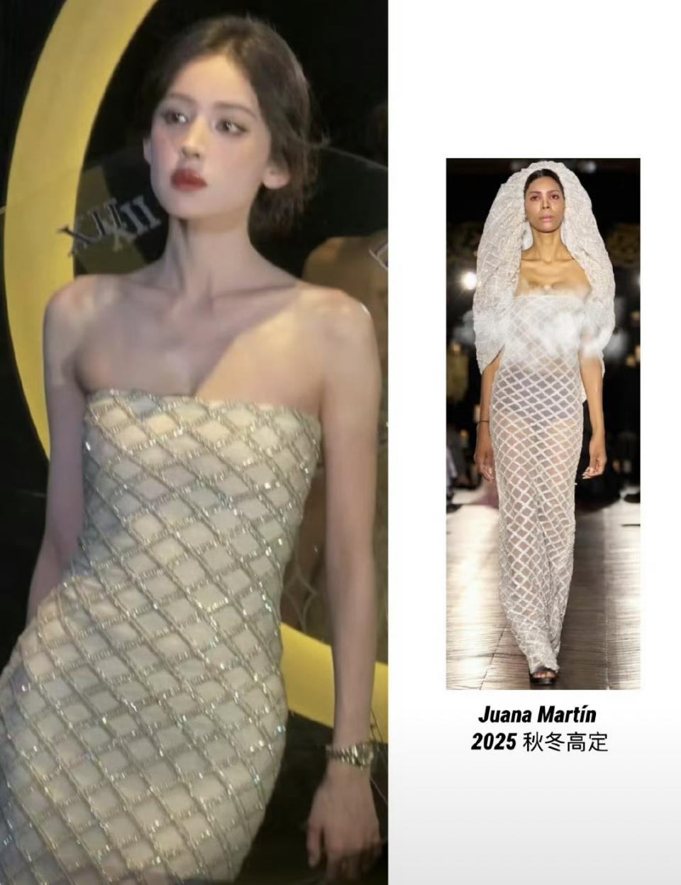 娜扎这波亮相直接把热搜焊死在身上了!2025年7月29日,她以欧米茄名人大使身份出席"密语时空"腕表展,一身Juana Martín秋冬高定抹胸裙一出场,全网直接集体失忆——谁还记得腕表长啥样啊? 这裙子简直是为她量身定做,抹胸设计把天鹅颈和肩线衬得像精心雕刻过,行走间裙摆摇曳生姿,网友调侃"美到让人想给裙子磕一个"。 说好是看表展,结果大家全在讨论"娜扎的美貌是不是开了永久会员",品牌方怕是也没想到,请了位自带聚光灯的主,硬生生把腕表展变成个人时装秀。#娜扎# #娜扎秀场造型#
