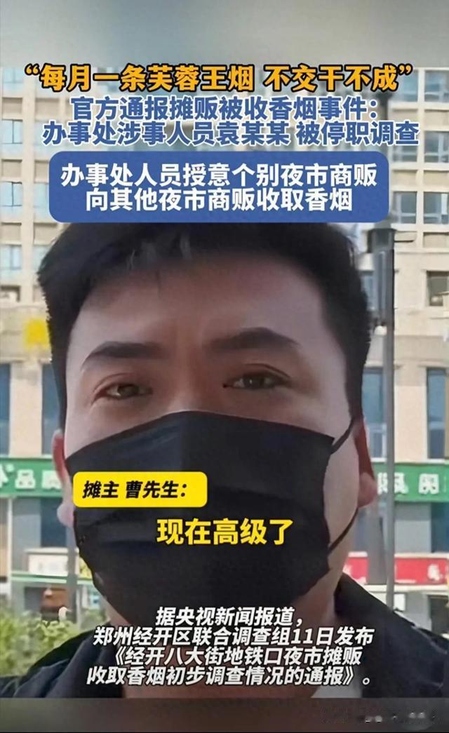河南郑州的曹先生,和咱许多摆摊人一样,怀揣着对生活的希望,在夜市支起了小摊 ,想着能靠自己的双手多赚点钱,改善一下生活。可没想到,刚摆上摊,就有人找上门来要烟。对方说,只要在这夜市摆摊,每个月就得交一条价值240元的芙蓉王香烟。曹先生一开始还挺纳闷,这凭啥啊?我摆摊又没违法违规,凭啥要给你烟?再说我每个月的摊位费都交着。结果对方直接放狠话:“这是替上边的人要的,不给就不能摆摊!”这话一放出来,曹先生心里一紧,心想:咱在人家的地盘上,也惹不起。再一打听,周围20多个摊贩都已经乖乖上交了。摊上这事,谁心理能感受呢?