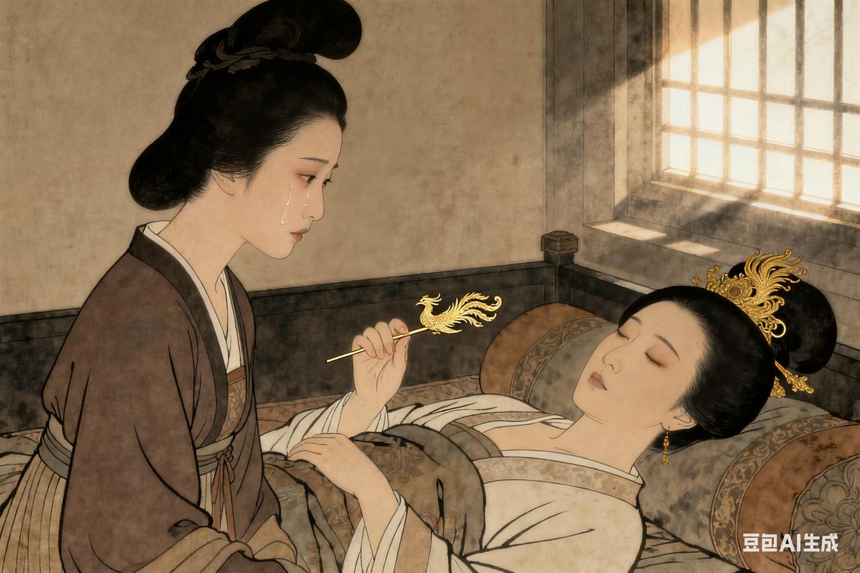 贞观二十三年,太宗驾崩的消息传到掖庭时,武则天正在给窗台上的仙人掌浇水。铜壶 “哐当” 一声砸在地上,水顺着砖缝往门槛外流,像止不住的眼泪。按规制,没有子嗣的嫔妃要入感业寺为尼,她收拾行李时,把太宗赏赐的那方紫绫帕叠了又叠,塞进贴身的衣袋里。寺院的日子清苦,每天天不亮就要起来撞钟、扫地,晚课结束后,她会坐在禅房的窗边,借着月光摸那支鎏金钗,钗尖划过掌心,有点疼,却能让她想起高宗看她时的眼神 —— 那眼神里有光,能把漫漫长夜照得亮一点。