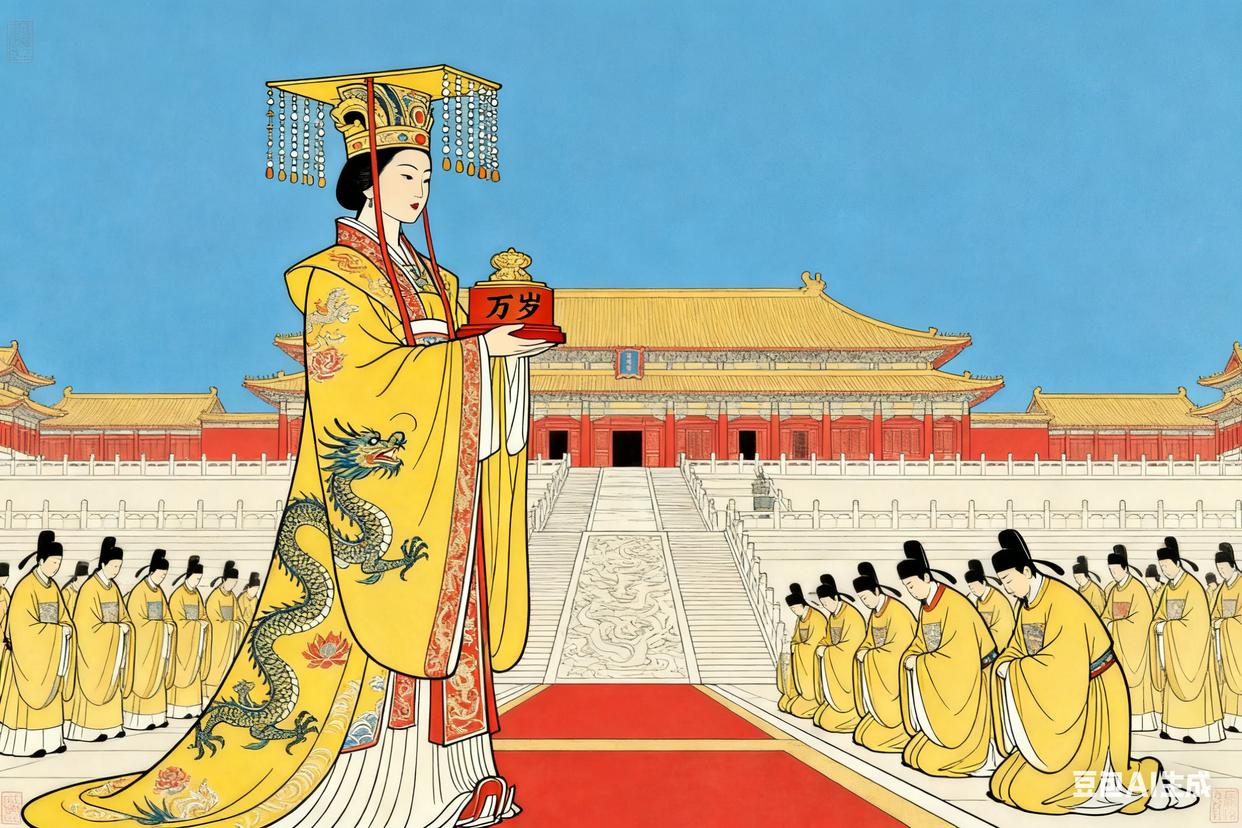载初元年的九月初九,武则天在洛阳紫微城的应天门登基称帝,改国号为周,改元天授。她穿着明黄色的帝服,戴着十二旒的冕冠,一步步走上登基台。百官跪在下面,山呼 “万岁”,声音震得应天门的瓦片都在颤。她接过传国玉玺,玉玺很沉,冰凉的玉质贴着掌心,却让她觉得浑身发热。登基诏书上写着 “天授圣图,地出宝符,祥瑞屡臻,天人协赞”,她念到这里时,抬头看了看天,天空很蓝,没有一丝云。她想起在感业寺的那些日子,想起小公主的死,想起朝堂上的明争暗斗,突然就觉得,所有的苦,都值了。