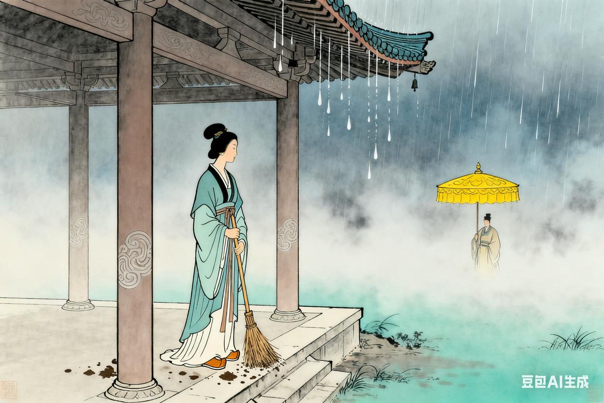 永徽二年的春天,高宗来感业寺进香,雨下得淅淅沥沥。武则天拿着扫帚躲在廊下,看着高宗的明黄色伞盖从雨雾里走过来,心跳得像擂鼓。高宗也看见了她,脚步顿了顿,伞沿下的目光落在她沾着泥点的僧鞋上。两人没说几句话,高宗就被寺里的僧人引走了,可那天下午,他让人给她送来了一方新的绢帕,帕角绣着一对鸳鸯。她把旧钗和新帕放在一起,夜里摸着它们,第一次觉得,这暗无天日的日子,好像要熬出头了。