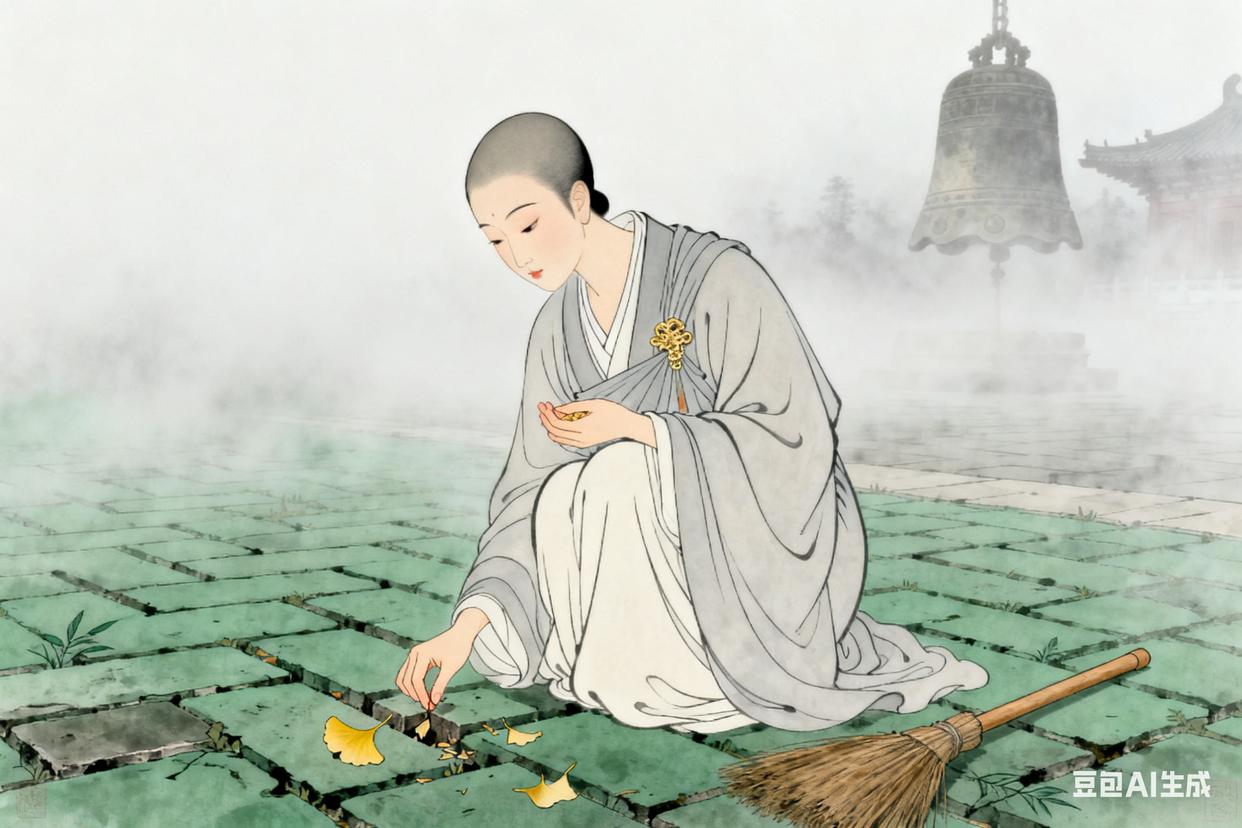 晨雾还没散透,感业寺的青砖就已经凉透了指尖。武则天握着扫帚蹲下来,一片半黄的银杏叶卡在砖缝里,她用指甲抠了半天,叶子碎在掌心时,晨钟刚好撞了第三下。怀里那支鎏金钗硌得肋骨发疼,是去年高宗来进香时,趁人不注意塞给她的 —— 钗头的凤凰翅膀已经磨得发亮,就像她藏在僧袍下的心思,再怎么掩,也藏不住那点烫人的光。
