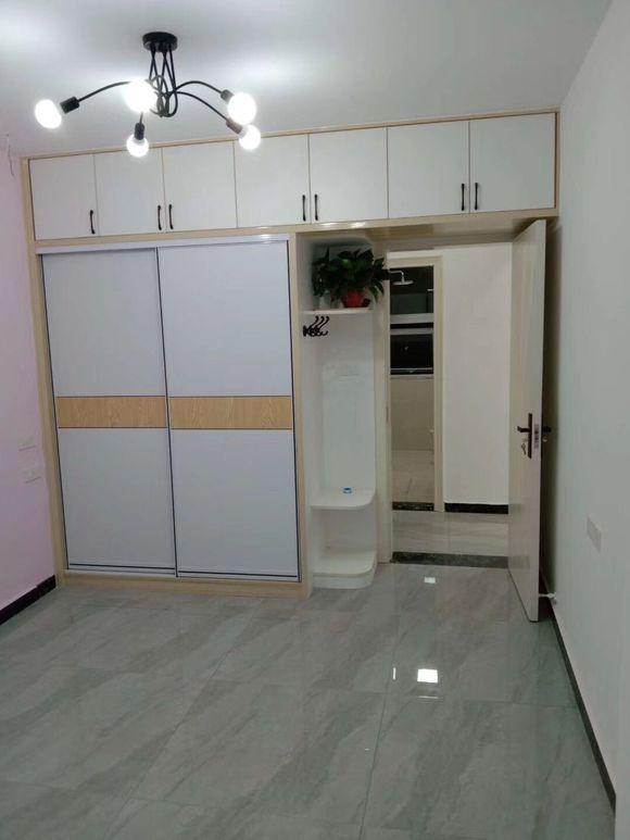次卧,同样是木工打的柜子设计,其实这种柜子和定制柜子相比较之下,除了颜值没有那么高,实用性都是一样的,而且材料是我们自己去买的,会比定制的好得多,不会容易坏。最主要的还是要遇到个好的木工匠才行。