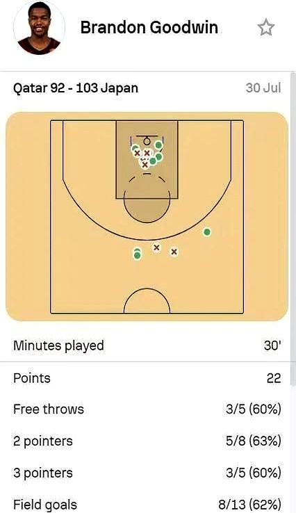 卡塔尔那边,CBA老熟人古德温22分10助攻,哈齐贝戈维奇24分8篮板,俩人抡冒烟,还是填不上日本外线挖的坑。