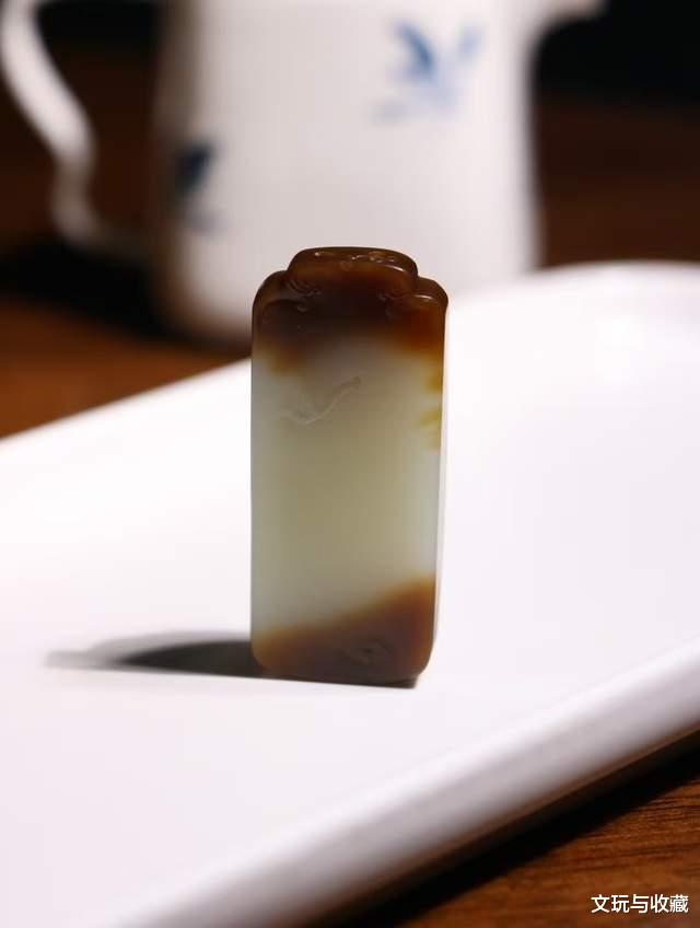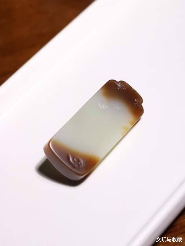 这件和田玉且末红糖料,一眼就能感觉料子细腻所表现的油润,两种颜色相得益彰,焦糖如蜜白糯似雪。