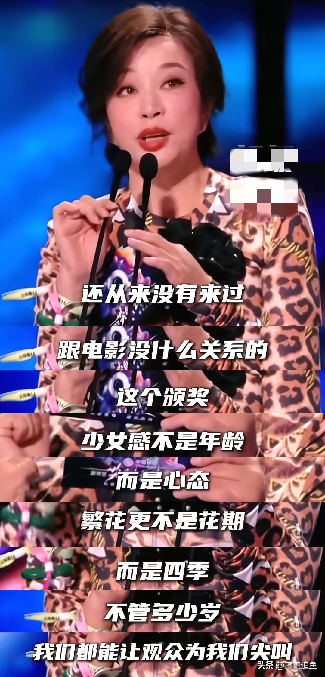 站在台上的她告诉台下的演员年龄不是问题,心态决定一切,这句话也鼓励了台下所有的女演员们。