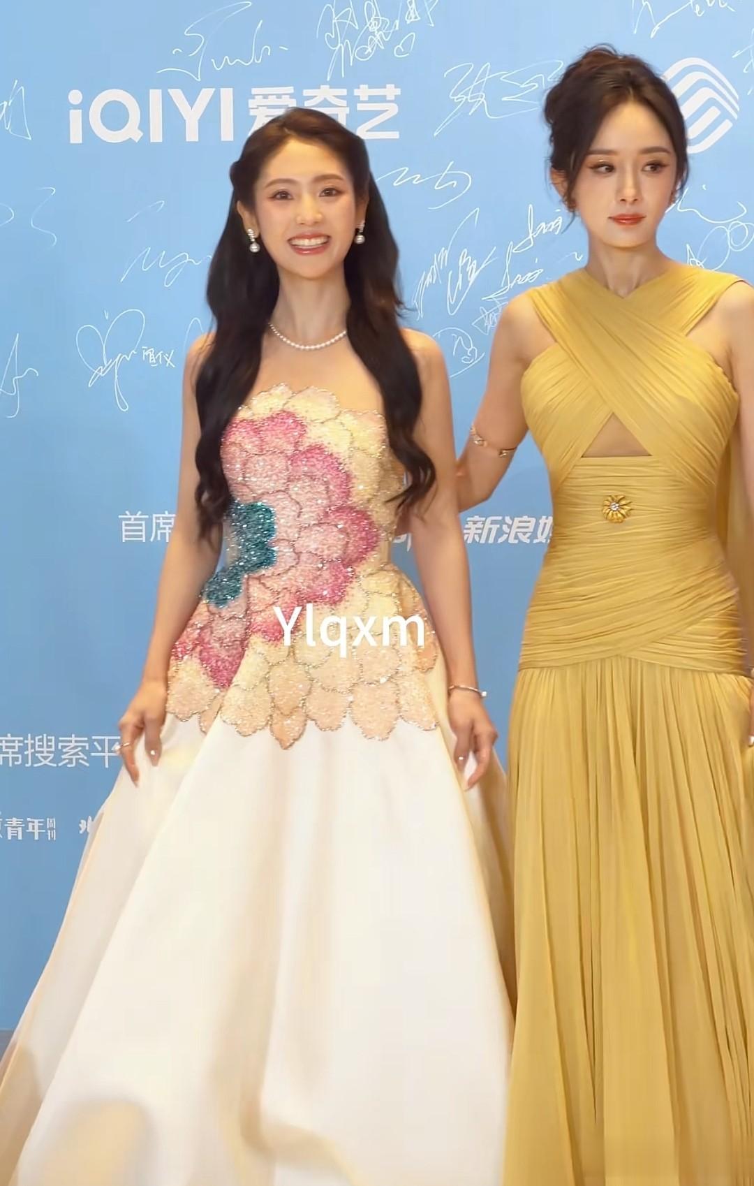 杨幂现场直接揽住邢菲,俩人剧里剧外都像姐妹一样,邢菲开心的不像话。
