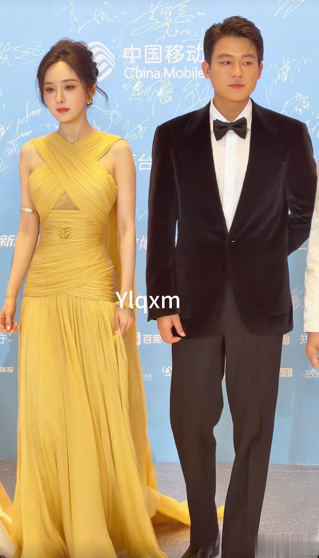 杨幂身穿黄色束腰礼服,身材玲珑有致,39岁的她罕秀身材,腰部纤细,依旧漂亮。