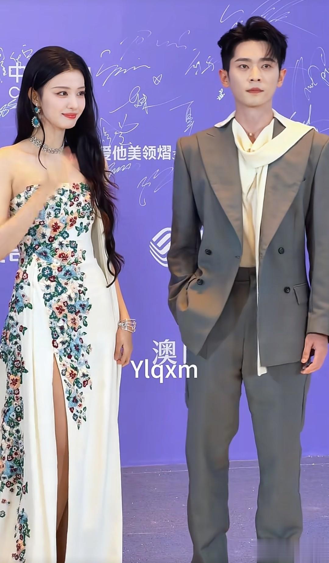 这次王楚然穿着抹胸花朵开叉礼服,给人一种花开富贵美感,简单大方不失美感。