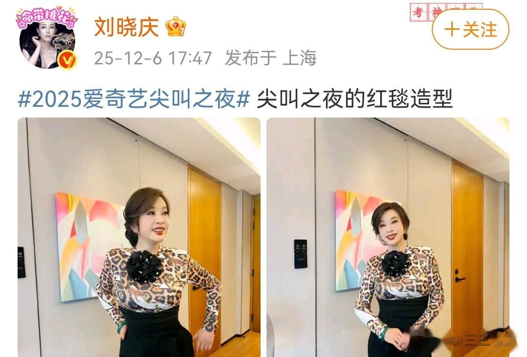 田曦薇一现身给人一种“在逃公主”的美感,长了一张娃娃脸,穿着豹纹礼服,乖巧反差感很强。