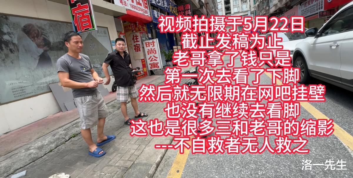 根据采访者本人表示,他拍摄老刘的时间是5月22日,发布视频的时间是6月12日,他临走前给了老刘一笔看病的钱,但实际上,老刘只是看了一次脚伤,剩下的钱,全部花在了网吧里。