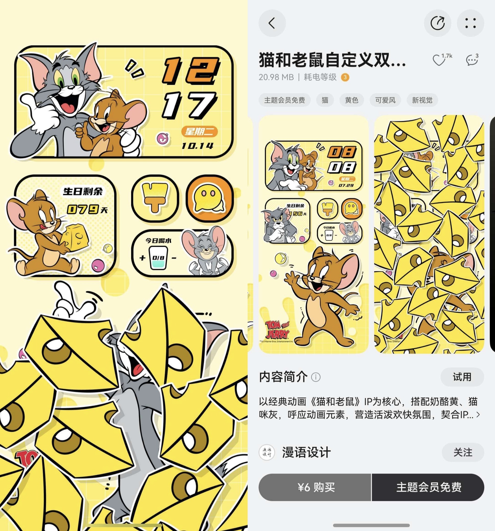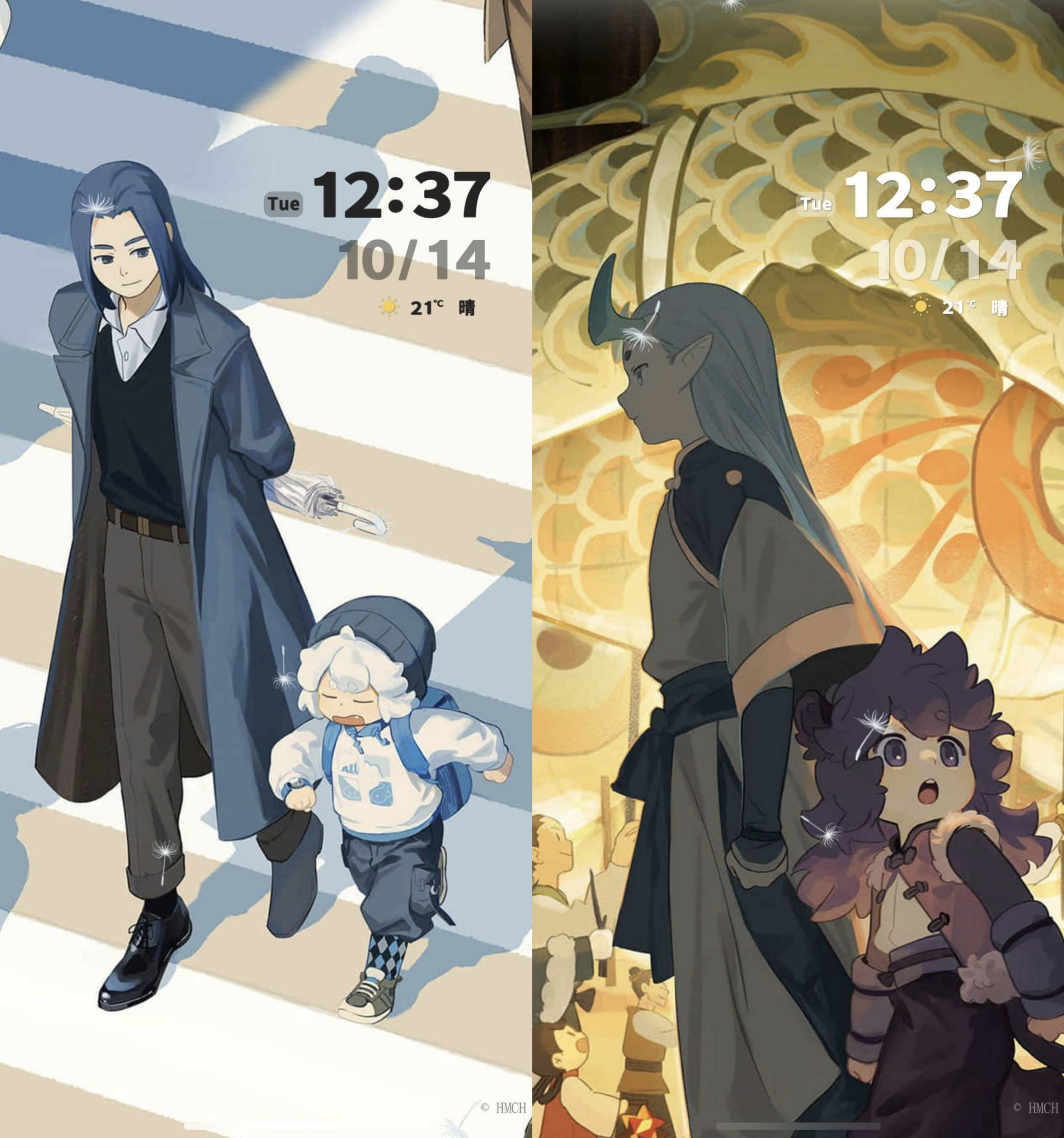感觉氛围渐入佳境,原来高冷男神也喜欢动画!我翻出罗小黑并肩同行主题给他看:晃一下手机,小黑和无限就变成了虚淮和风息。双击屏幕还能调出组件栏,每个图标都可爱的不行。他掏出自己的手机说“我也要用同款”,还跟我讨教怎么把主题的百变卡片混搭,用猫和老鼠的锁屏画面,配罗小黑的百变卡片,桌面瞬间变的有趣又好看。