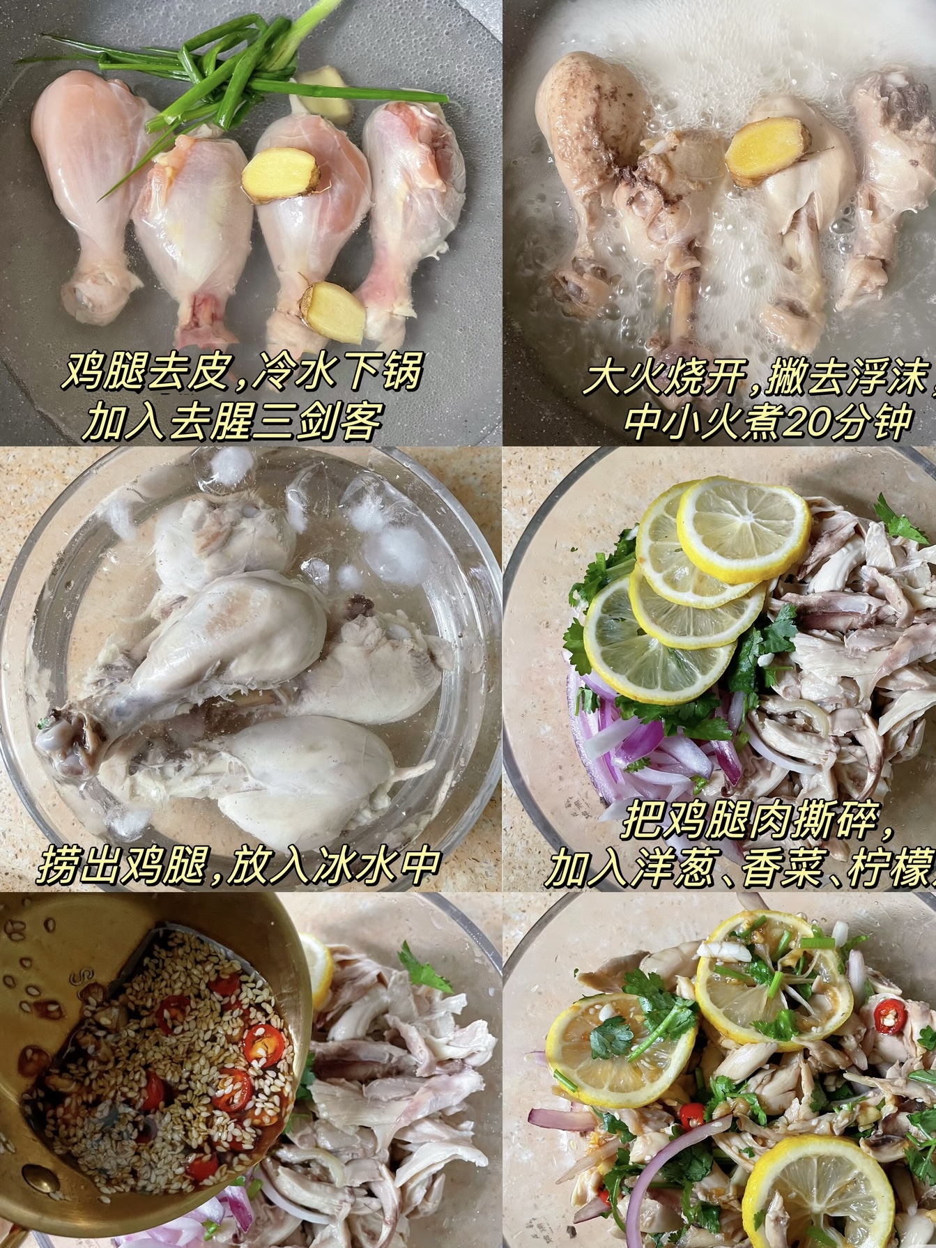小贴士:煮鸡腿的时间不宜过长,否则鸡肉会变得过于软烂,失去口感。调制酱汁时,可以根据个人口味调整各种调料的比例。如果你喜欢更酸一点,可以多加一些柠檬汁;如果你喜欢更辣一点,可以多加一些小米辣。