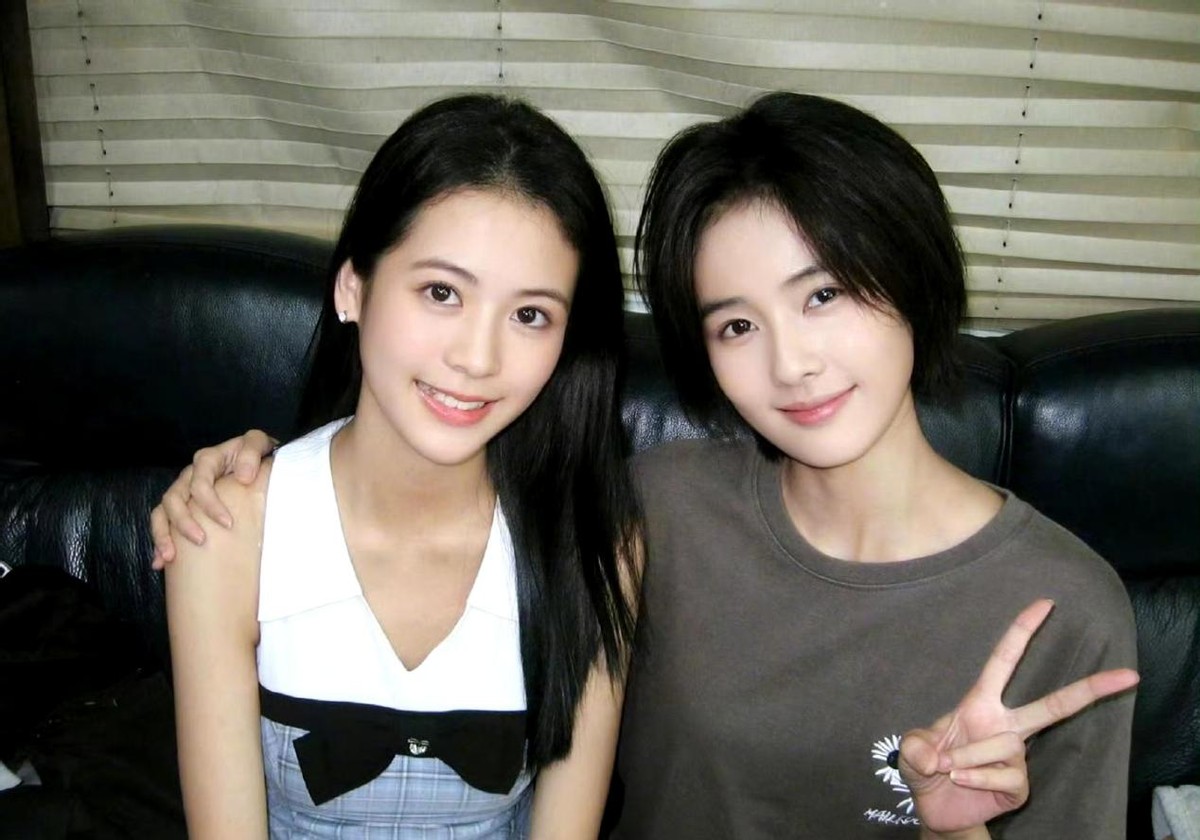 如果不是姐妹俩的身高差明显,很难不以为这是一对双胞胎。