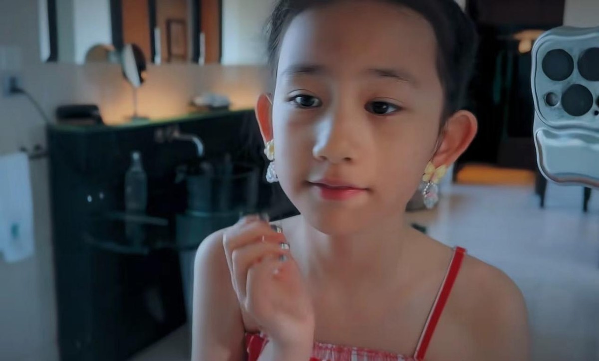 二女儿虽然没有多多的桃花眼,但高颜值也很有辨识度。