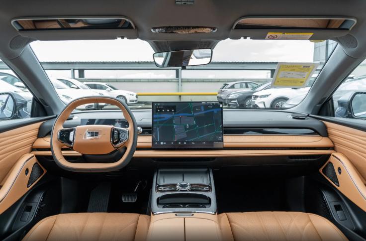 吉利银河星耀8的内饰设计比较上档次,皮质多功能方向盘握持手感扎实,并且符合人体工学,长时间搭着也不太累。与之匹配的电子怀挡没有其它功能区的设计那么精致,硬塑料装饰符合预期,操作手感轻盈,便利性良好。不过,副仪表台的用料很不错,前段标配带有风冷散热的50W手机无线充电区域,底部有防滑绒布覆盖,照顾到了用户的日常使用体验。接着往后看,体积较大的多媒体音量调节水晶旋钮占据视线,触感冰凉但不硌手,操作时有清晰的阻尼感,两侧功能按键采用钢琴烤漆工艺涂镀,质感符合主流审美,但按键易沾染指纹,日常需要勤打理才能保持整洁。