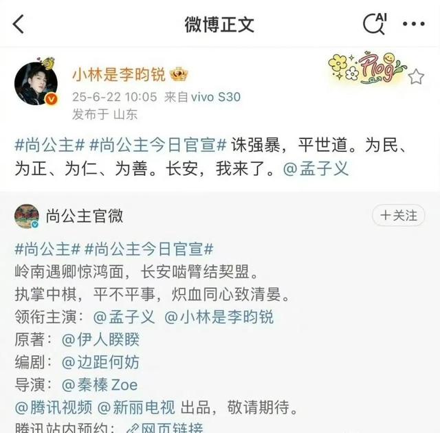 2024年年底,李昀锐和孟子义的CP赚足了脸面, 两个人不到半年时间就再搭《尚公主》官宣。两个人同时凭借着一部剧爆红,再一次搭档,番位谁在前谁在后这件事情,有说道。